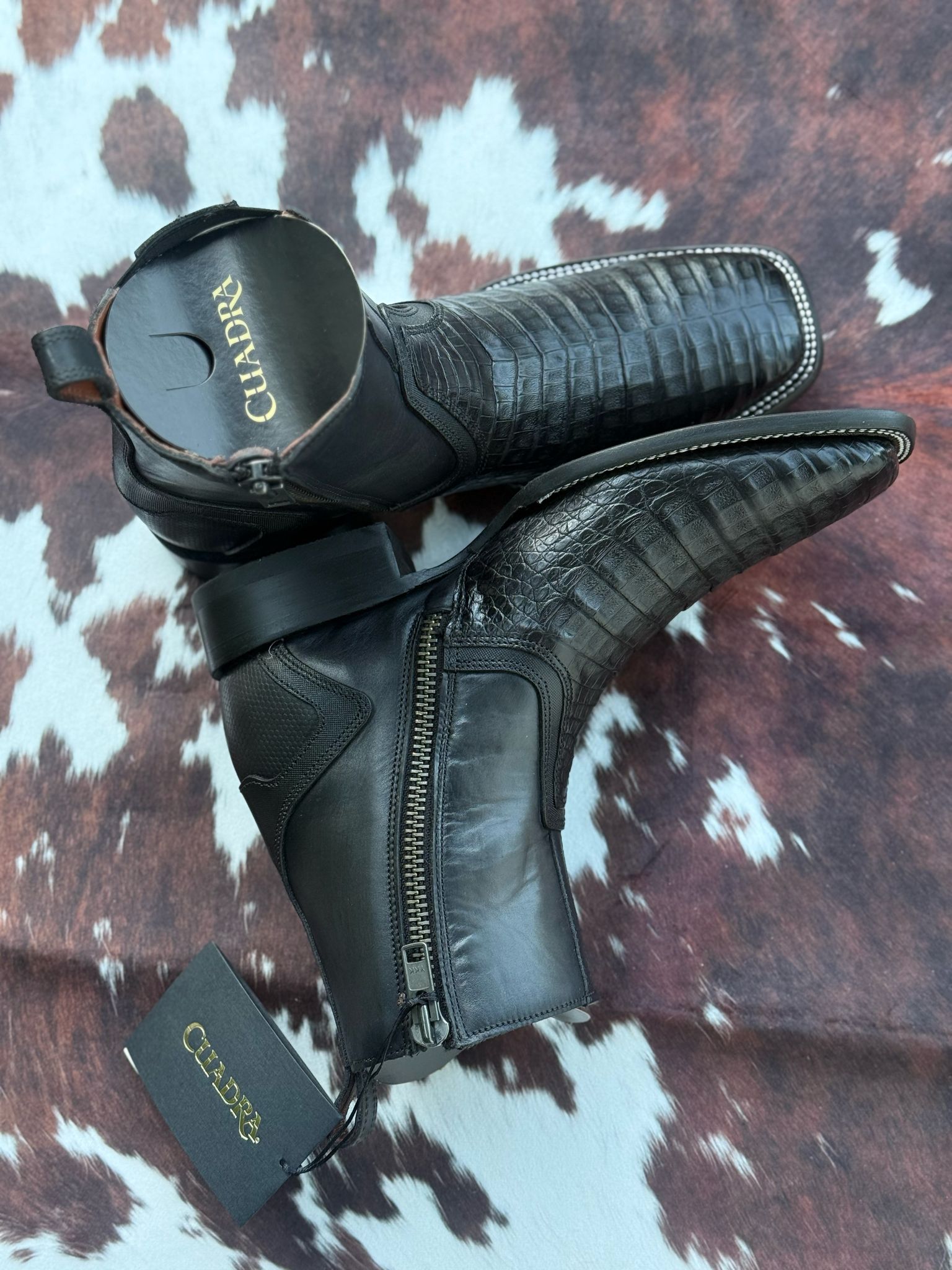 Botin urbano para caballero en piel genuina de Caiman. Presenta acabado semi brillante. La parte trasera y lateral cuentan con detalles en grabado láser. Ajustada con cierre interno. Suela de cuero con hule.