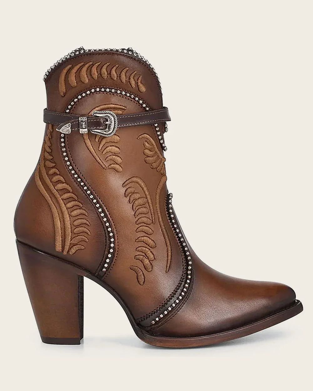 Estas botas hacen una declaración llamativa con sus motivos orgánicos bordados, aplicaciones metálicas y un acabado pintado a mano. Cada puntada muestra la artesanía muy cuidadosa que entra en la creación de estas elegantes botas. Tiene una correa de cuero con una hebilla metálica y una cremallera interior para que se pongan y se quiten sin esfuerzo. Las suelas de cuero, con inyección TPU garantiza una tracción y estabilidad superiores. Por lo tanto, le permite avanzar con confianza en cualquier entorno.