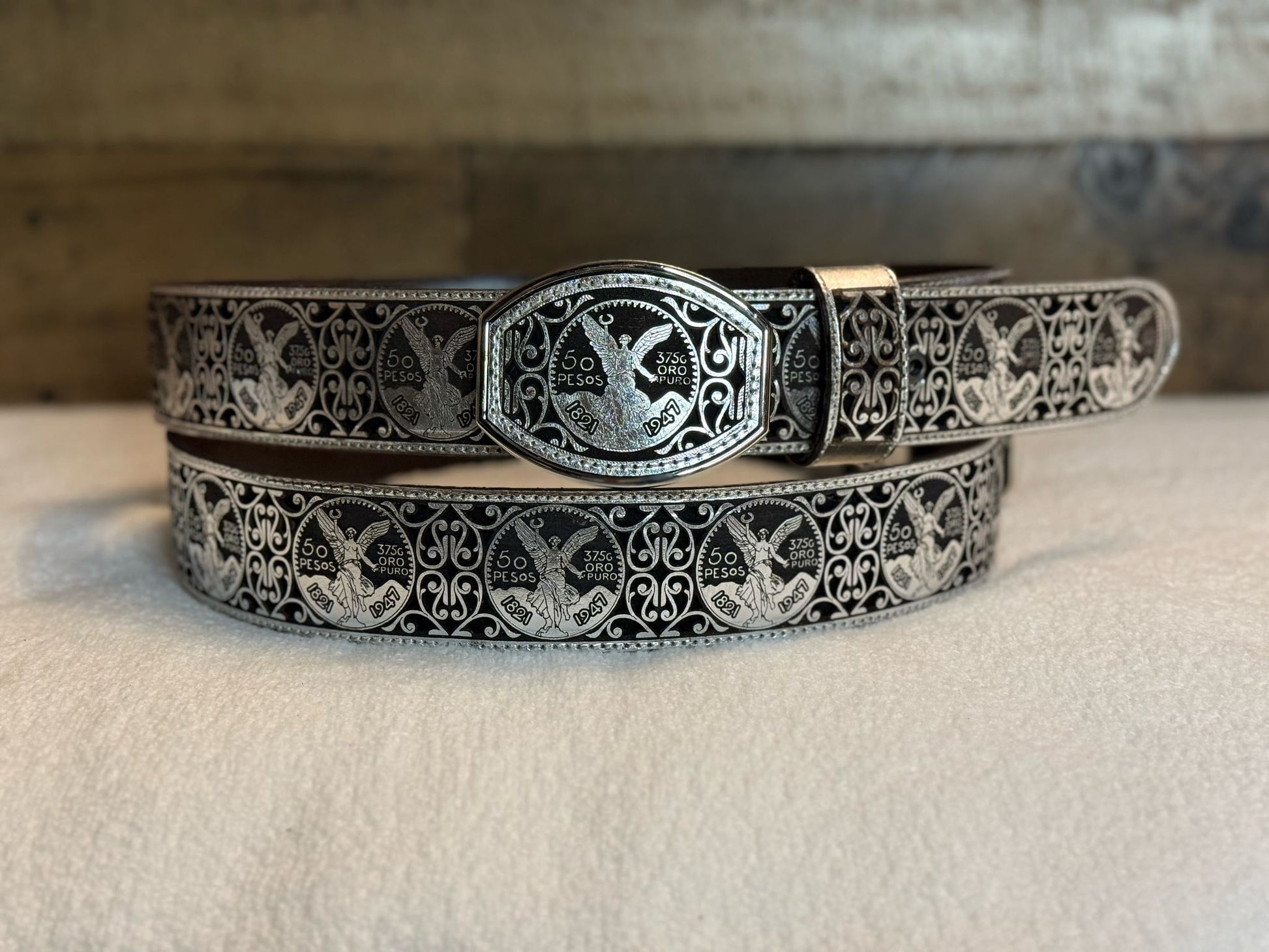 Cinturones a base de baqueta de res. Hechos a corte láser.